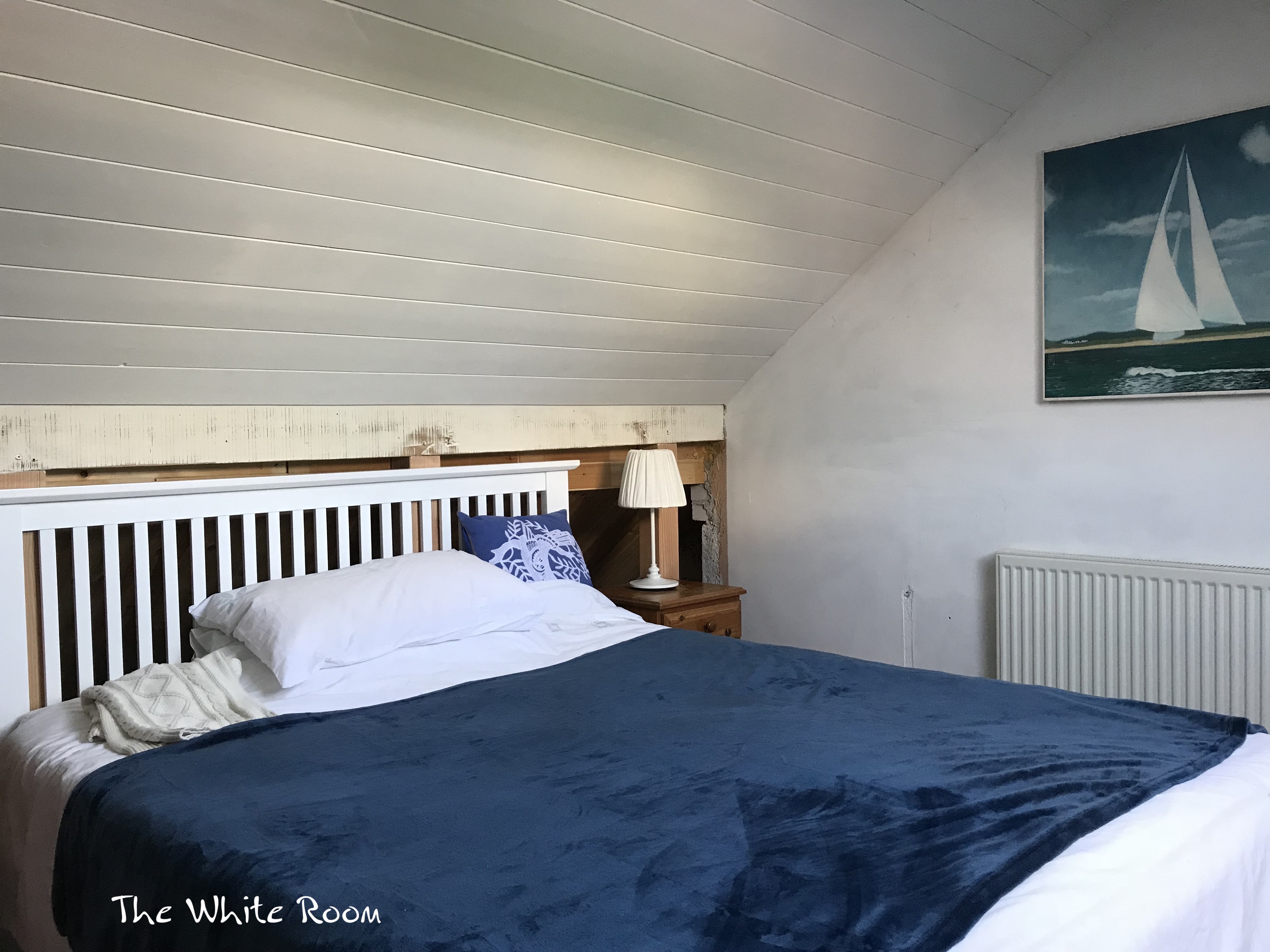 Of course it's white, why else would it be called the White Room? Honestly!! . . . Anyway, a large double bed and