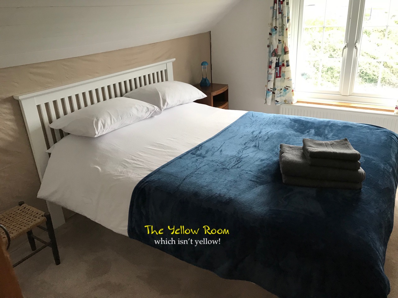 It's Blue, obviously. A huge double bed as well as two 3 ft single beds for families to share with fabulous views out to sea, of Bolt Tail and across to Inner Hope . . .